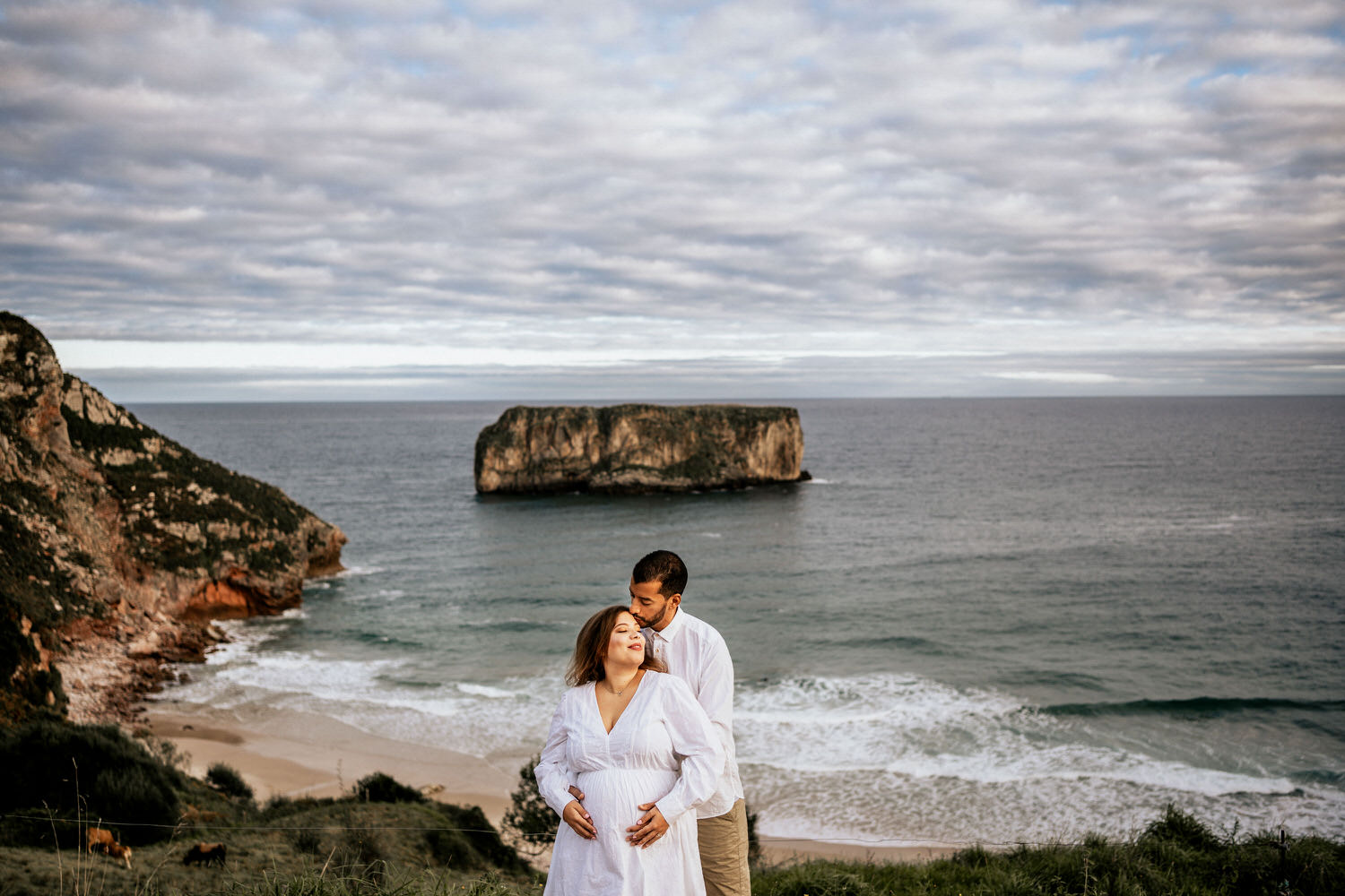 La playa de Andrín en Llanes, Asturias es un lugar espectacular para hacer sesiones de fotos. A primera hora de la mañana, el sol se eleva sobre el horizonte y baña el paisaje con una luz cálida y dorada, creando un ambiente mágico para capturar los momentos más especiales de la vida de una familia. Durante la sesión de fotos con mis clientes Daniel y Paola, pudimos disfrutar de la belleza natural de la playa, con su arena limpia. Además, el paisaje alrededor de la playa es impresionante, con acantilados y montañas que se reflejan en el mar, lo que hizo que la sesión fuera aún más especial. Sin duda, la playa de Andrín es un lugar inolvidable para hacer una sesión de fotos de embarazo.