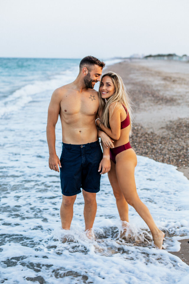 La playa del Saler es un lugar hermoso, con una vista impresionante del mar Mediterráneo y un ambiente relajado que se ajustaba perfectamente a lo que buscábamos para esta sesión. Aprovechamos la luz dorada del atardecer para capturar algunas de las fotos más románticas, y los resultados son impresionantes.